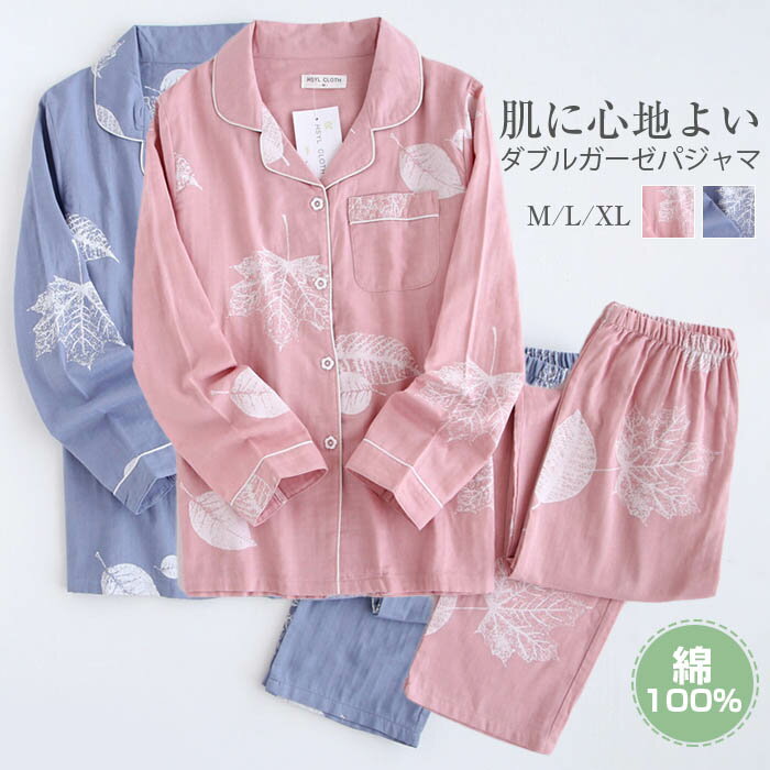 パジャマ レディース 長袖 綿100 ガーゼ パジャマ ダブルガーゼ 春夏 前開き 入院 産後 ルームウェア レディース 夏 部屋着 ナイトウェア 上下セット 送料無料 あす楽 綿100 綿 M L Ll 冬 春 夏 夏用 Pj011swのおすすめ キテミヨ Kitemiyo