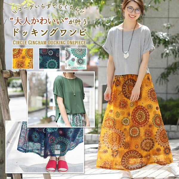 Sale ワンピース 夏 春 ロング マキシ丈ワンピース カットソーワンピース セットアップ風 柄 花柄 フラワー 半袖 レディース ゆったり エスニック ネイティブ チチカカ公式 Titicaca サークルギンガムドッキングワンピース Iscbc163 オンライン店限定 Ocruyo